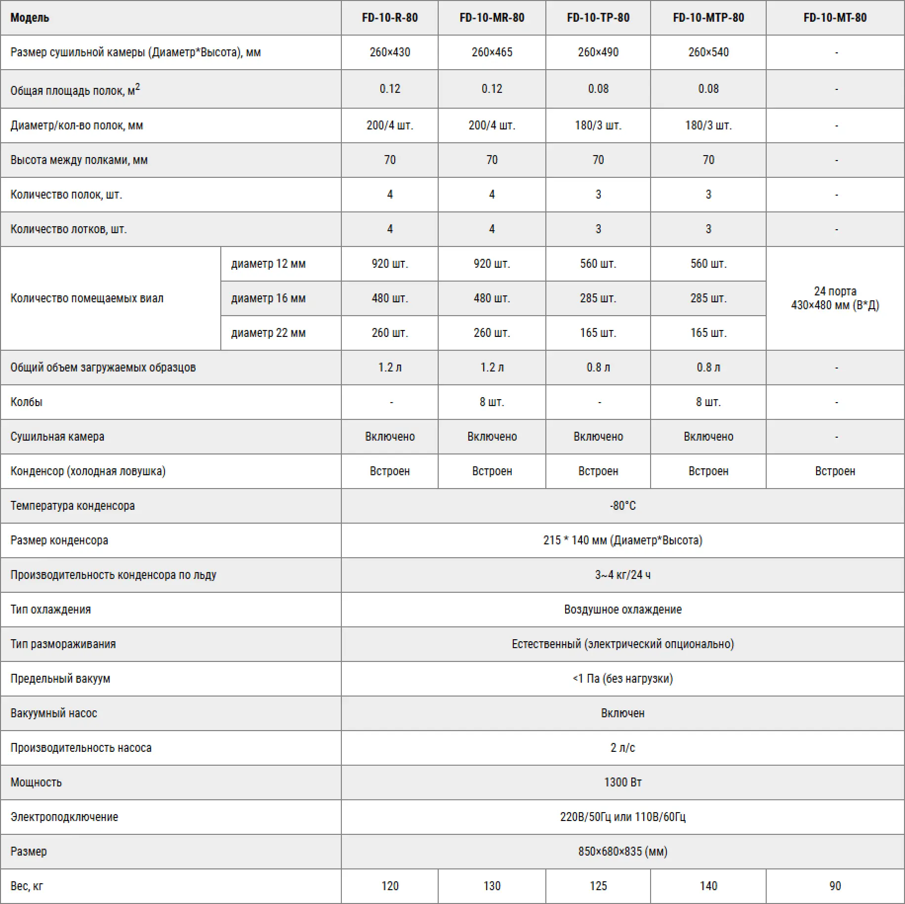Технические характеристики лиофильной вакуумной сушилки FD-10-80 В стандартную комплектацию входит вакуумный насос серии 2XZ (торговая марка в Китае) Технические характеристики вакуумного насоса серии 2XZ